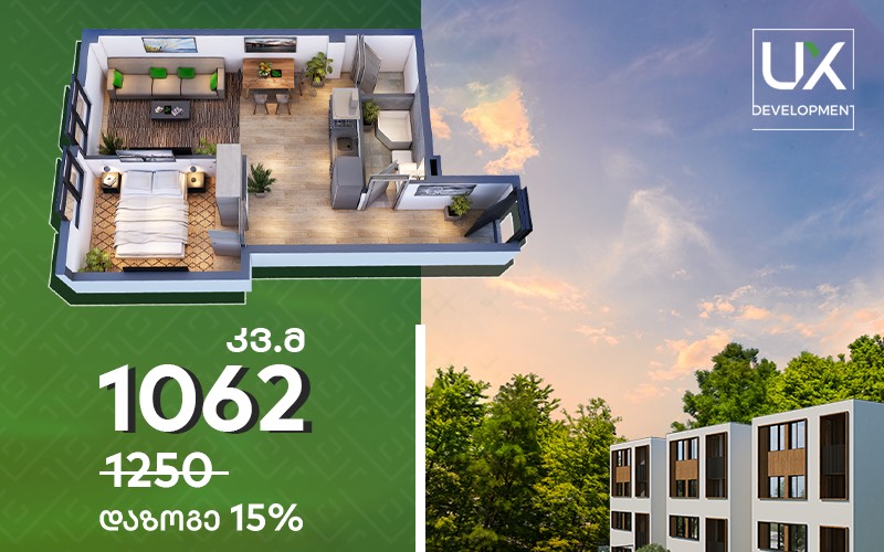 შეიძინე ბინა "UX Development"-ში დღესვე და დააფიქსირე ბინის ღირებულების 20% წინასწარ